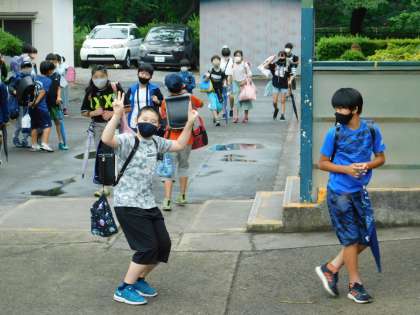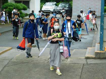4・5年生が登校してきました。