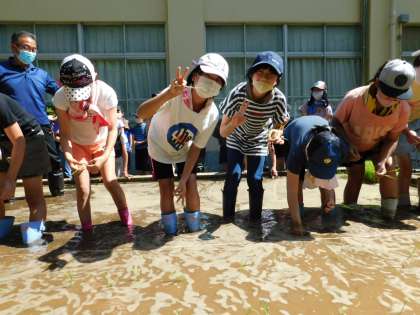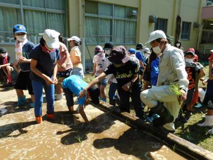 この日のために、用務主事さんが田んぼの準備をしてくれました。