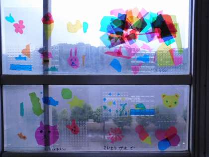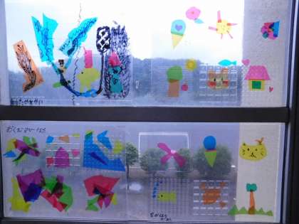 2年生教室前の窓に、子供たちの作品が貼られていました。