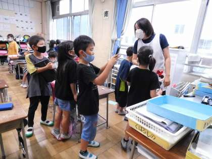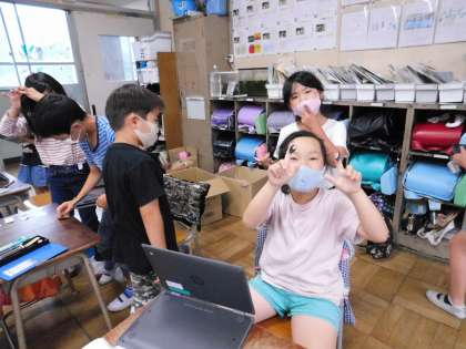 明日金曜日は、全校児童がタブレットPCを持ち帰ります。2年生は写真を撮る練習中です。