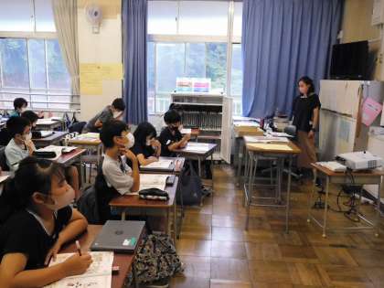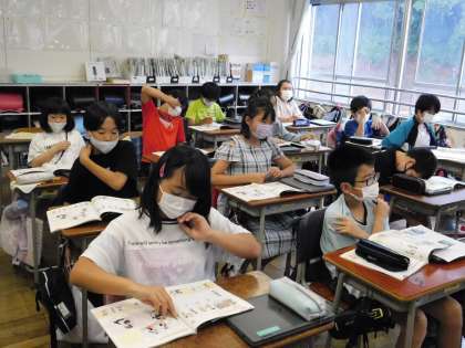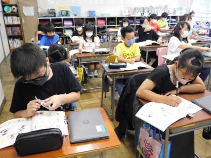 5年1組は外国語の授業でした。「CAN」を使った学習です。