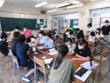 少人数教室では6年生が算数をしていました。お楽しみ学習ゲームに取り組んでいました。