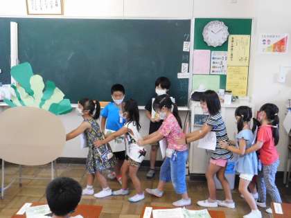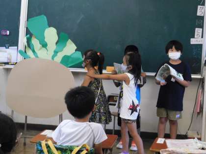 1年2組は国語の「大きなかぶ」を劇で表現していました。