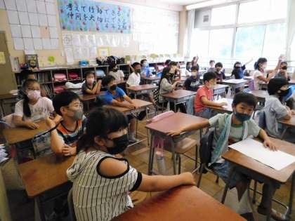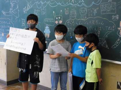 4年2組は、一学期のお楽しみ会とお別れ会を兼ねて、学級会をしていました。