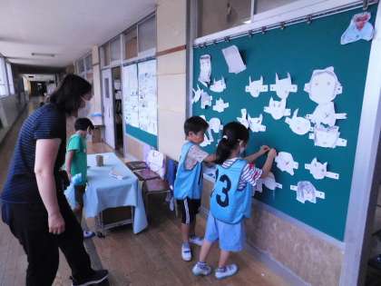 最後はお面屋さんです。鬼滅の刃のお面が大人気です。とっても楽しい夏まつりでした。