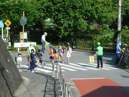 7月21日、1学期最後の朝の見守り風景です。この日も大勢の方が子供たちの安全を見守ってくれていました。