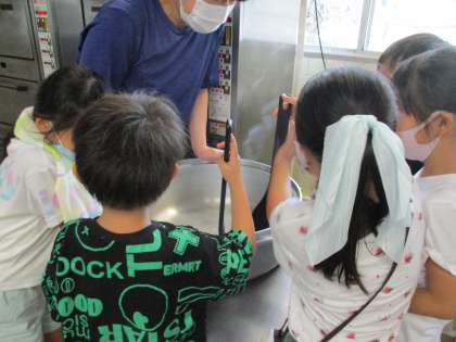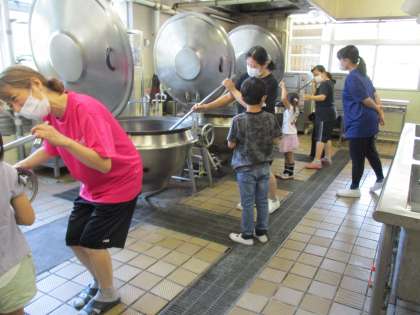 1年生が1学期終わりの日に給食室探検をしました。