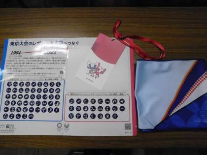 9月2日(木)は城山小学校のオリパラ教育の日でした。写真は都から配布された遮光版と入場チケット、冷却用首巻シートです。