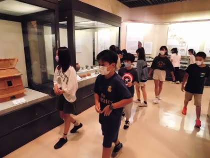 続いては実際に古墳を見に行きます。博物館内は密を避けるため、クラスを半分にして見学しています。