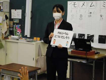 この日の授業は、牛乳の成分でもあるカルシウムの話でした。