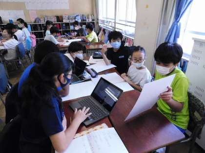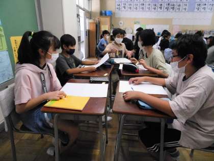 6年生の社会科です。戦国時代の3人の武将(信長、秀吉、家康)について各自が調べました。