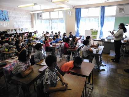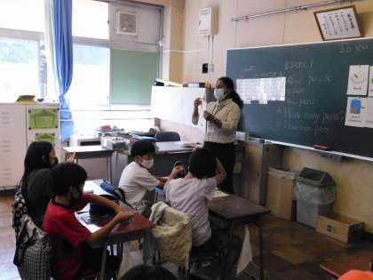 2学期最初のALTの先生との外国語活動の授業です。写真は4年2組です。