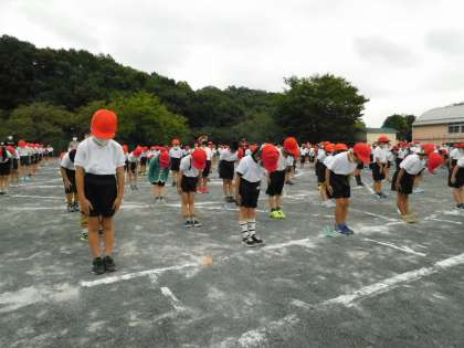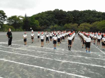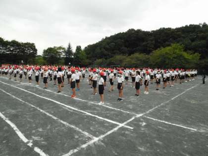 14日(火)全体練習を行いました。整列、おじぎ、準備運動などの練習です。明日は開会式等の練習です。