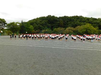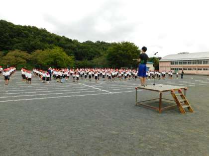 今朝の体育朝会は開閉会式の練習をしました。次は本番です。