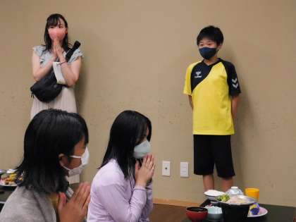 一日目の夕食です。いただきますをします。