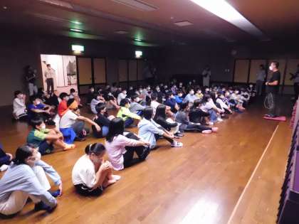夕食に続いては、ナイトハイクです。まずは中嶋先生の怖〜い話から。