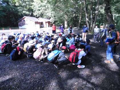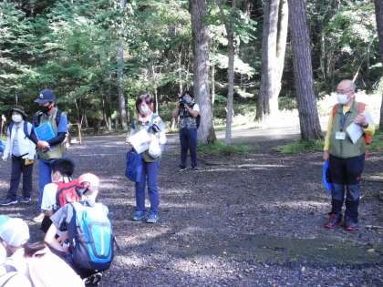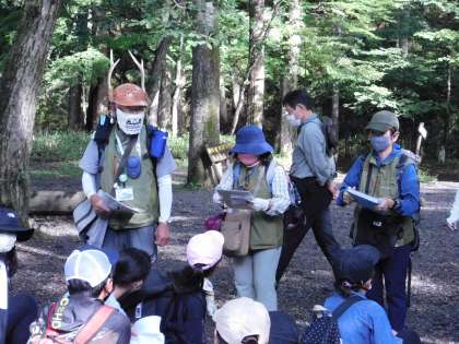スタート地点の湯滝駐車場で、戦場ヶ原のガイドを務めていただく、ネイチャーガイドの皆さんと顔合わせです。