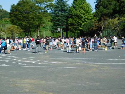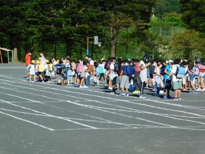 校庭に並んだ子たちも、この後、分散して校舎内に入ります。