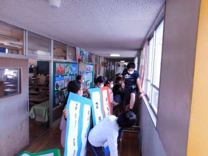 いよいよ明日が本番です。6年生の子たちがお手伝いをしてくれています。