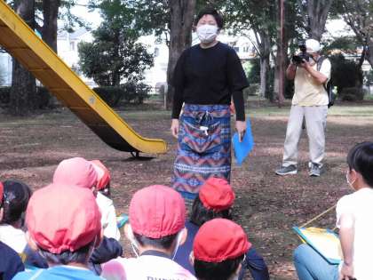 卸売センターに着きました。まずは案内をしてくださる係員の方のお話を聞きます。