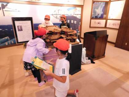 資料展示室見学中です。