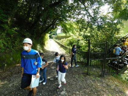 普段は使用しない校庭奥の階段から、避難しました。