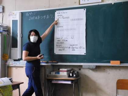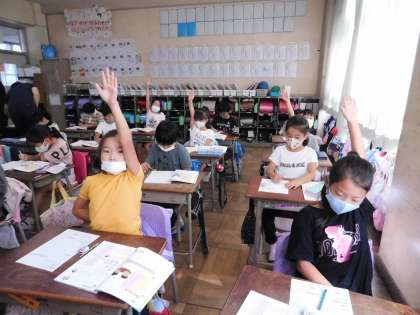 2年1組は「2の段」の九九を使った学習をしていました。全員がきちんと式が書けていました。