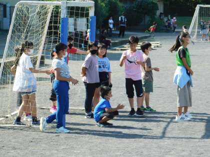 校庭活動中です。