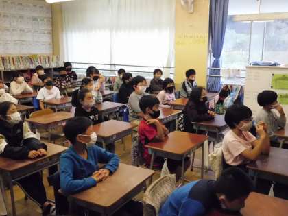 子供たちは南極の話に夢中になっていました。また、南極の氷もいただきました。お忙しい中をありがとうございました。