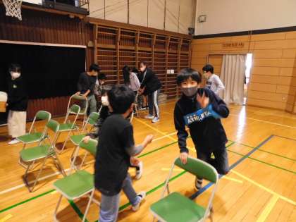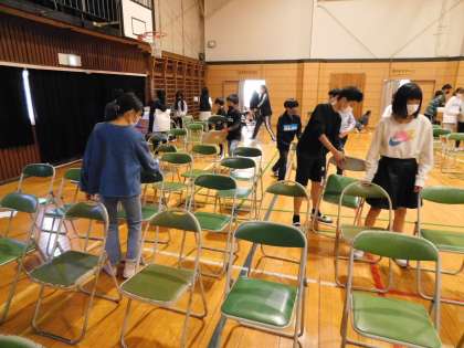 明日に向けて、今回も6年生が体育館等の準備をしてくれました。
