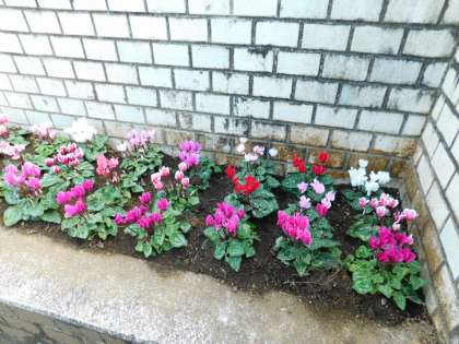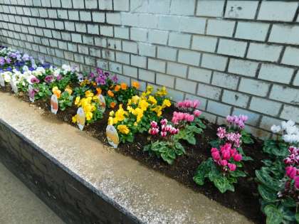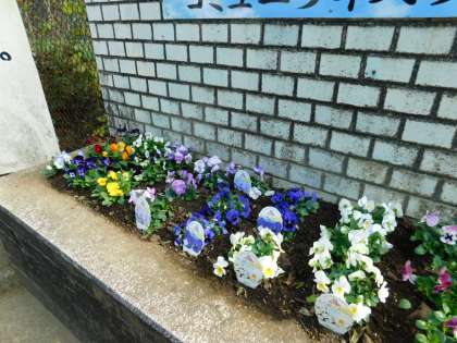 学校コーディネーターの塩野さんが、いつものように校門前の花壇に花を植えてくれました。