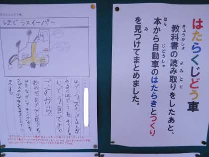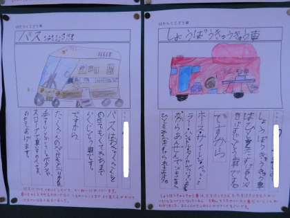 1年生が国語の授業で学習した「はたらく自動車」の絵を描きました。