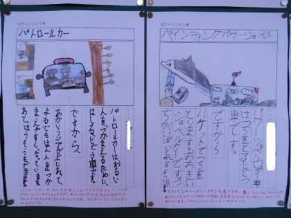 ちょうど工事現場が窓から見えるので、子供たちは描きやすかったと思います。
