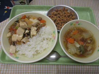 豆腐のうま煮も春雨スープも野菜たっぷりでした。
