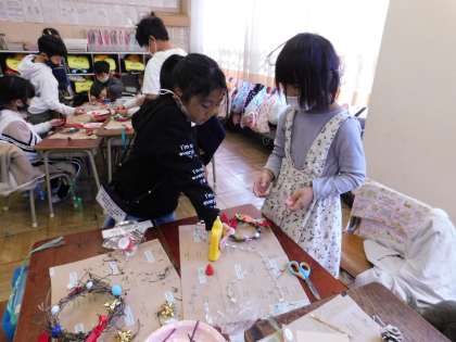 どんな飾りを付けようか、友達に相談したり、一人でじっくり考えたりしていますね。