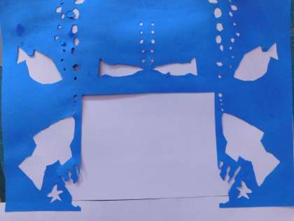 色画用紙を2つに折り、カッターで模様を切り取っていきます。