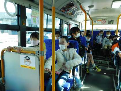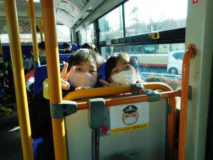 初めてバスに乗る子もいて、子どもたちはワクワク、ソワソワしていました。