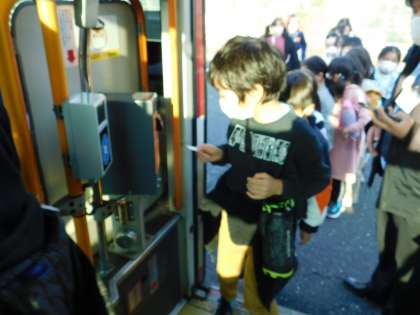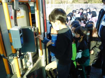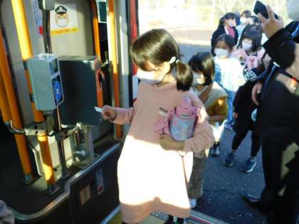 説明が終わると、バスに乗って整理券をとったり、精算機に入れたりする練習もしました。