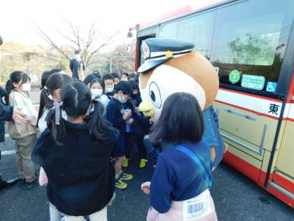 いよいよお待ちかねの西東京バスのキャラクター「にしちゅん」とご対面です。