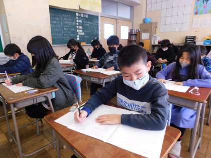 1月13日、4〜6年生が2回目の八王子市学力定着度調査を受けました。写真は4年2組です。
