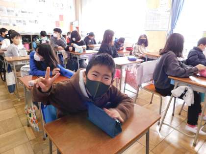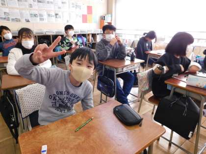 5年3組はすでに終了してました。先生からの解説を聞き、一喜一憂です。