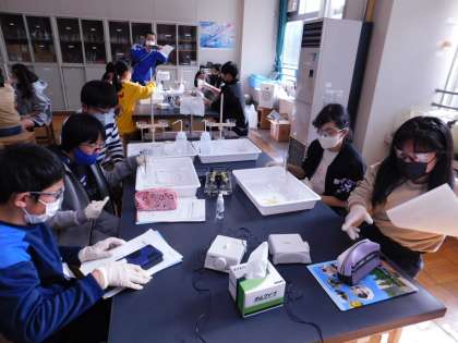 実験内容は、鉄が溶けた水溶液を浄化し、水道水に近づけて流すという実験です。