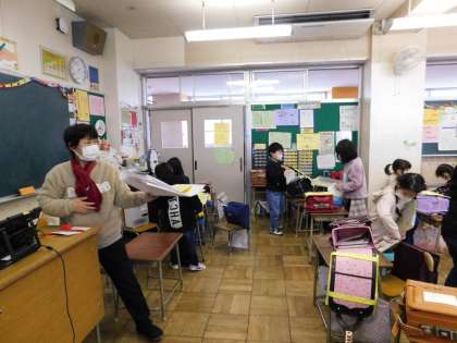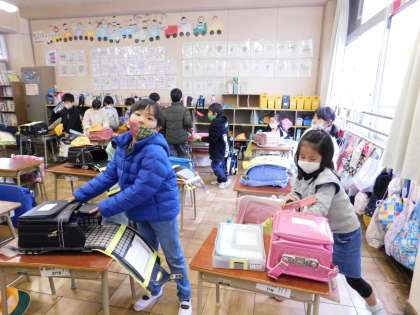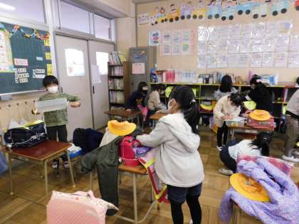 1年1組はちょうど帰りの支度をしていました。