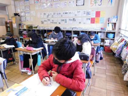 5年3組はオンライン学習に加え、映像を取り込んで流すなど、工夫した授業をしていました。