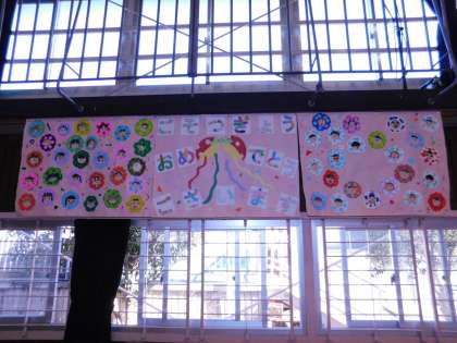 ギャラリー下には、各学年からのメッセージが貼られています。写真は1,2年生です。
