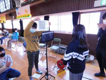 2年生の次は1年生です。児童会の子が紹介してくれています。