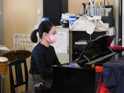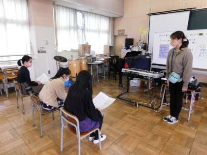 卒業式で歌う「城山小校歌」の伴奏者を決めています。