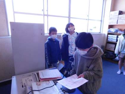 お昼の放送は放送委員の子と給食委員の子が来て、担当してくれます。写真は5年生の給食委員の子たちです。