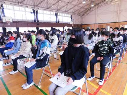 椅子を保護者席に向けて、呼びかけを行います。