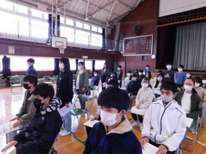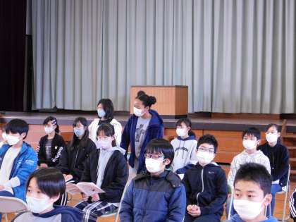 呼びかけを言う子たちが、数人ずつ起立して言葉を言います。